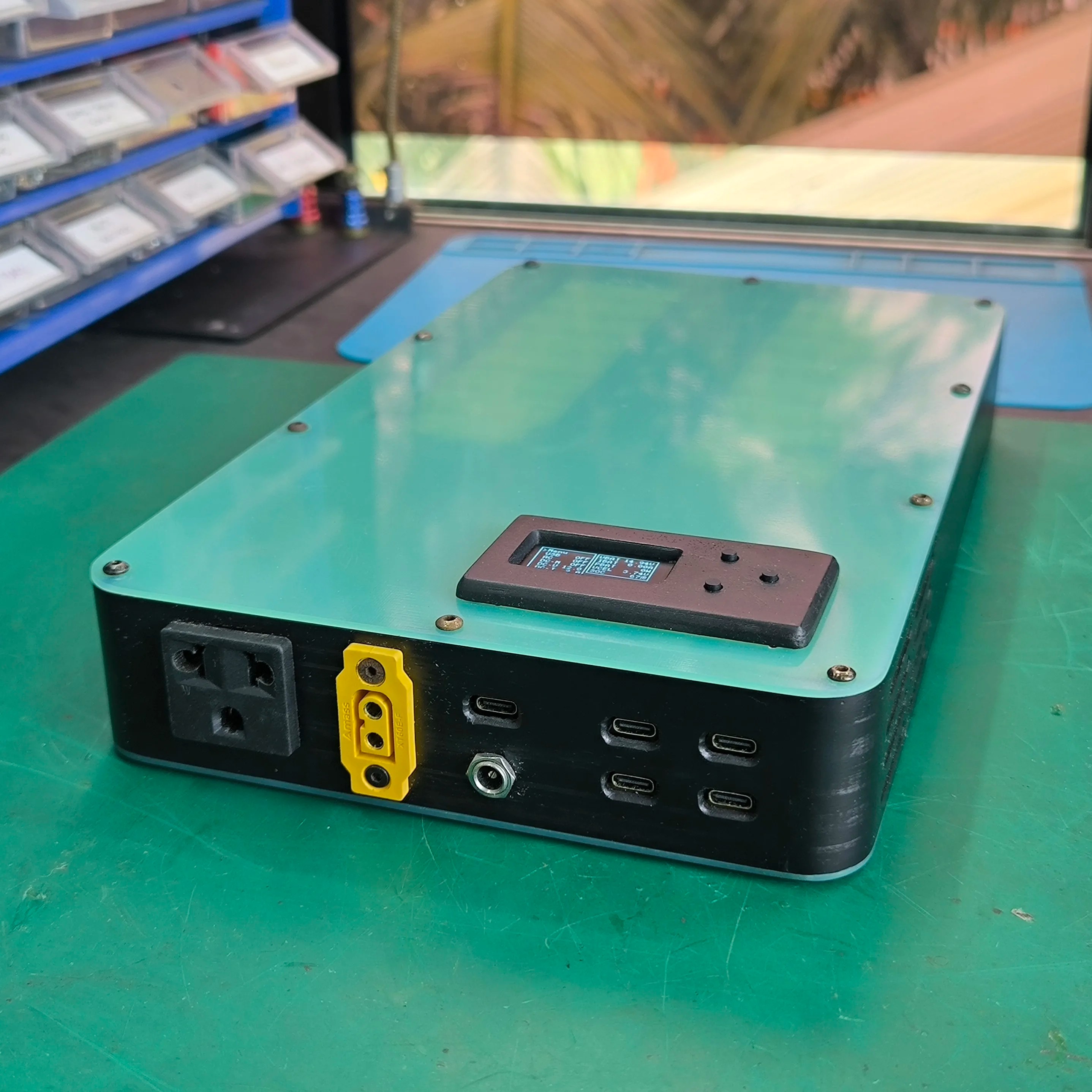 出力の多様さがこのプロジェクトの設計上の特徴だ。36W USB-Cポートが4基、100W双方向USB-Cが1基、120W双方向DCジャックが1基、150WのACインバーター出力が1基。さらにXT60コネクターでバッテリーに直接アクセスでき、400W超の出力にも対応する。ドローンやロボットへの給電を想定した設計だろう。